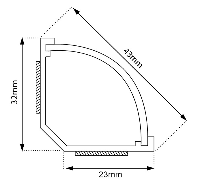 Listwa maskująca narożna, kanał kablowy o długości 1.5m i wymiarach 43x23mm. Biała z taśmą przylepną.