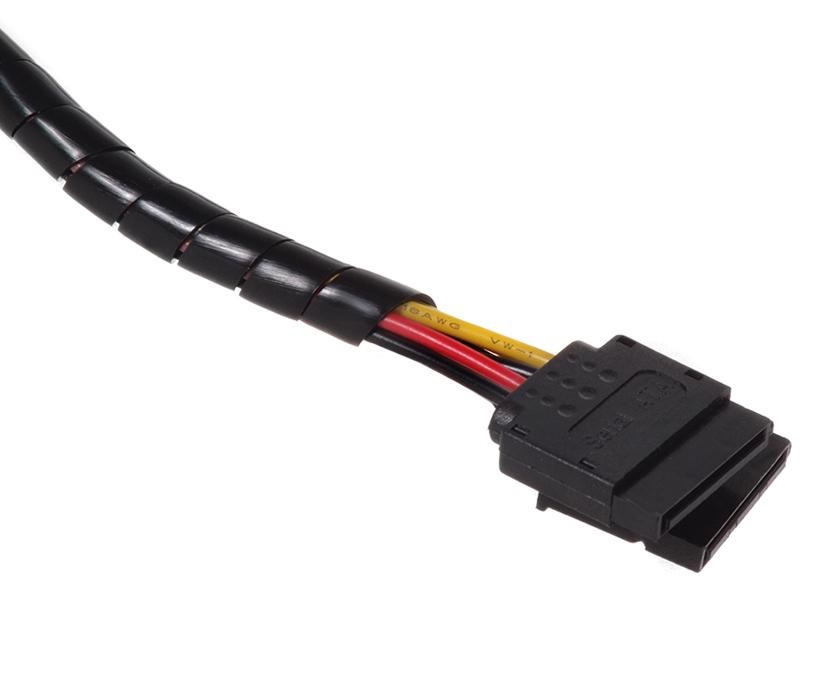 Organizator, maskownica do kabli/przewodów wykonany z elastycznego tworzywa w kolorze czarnym.
