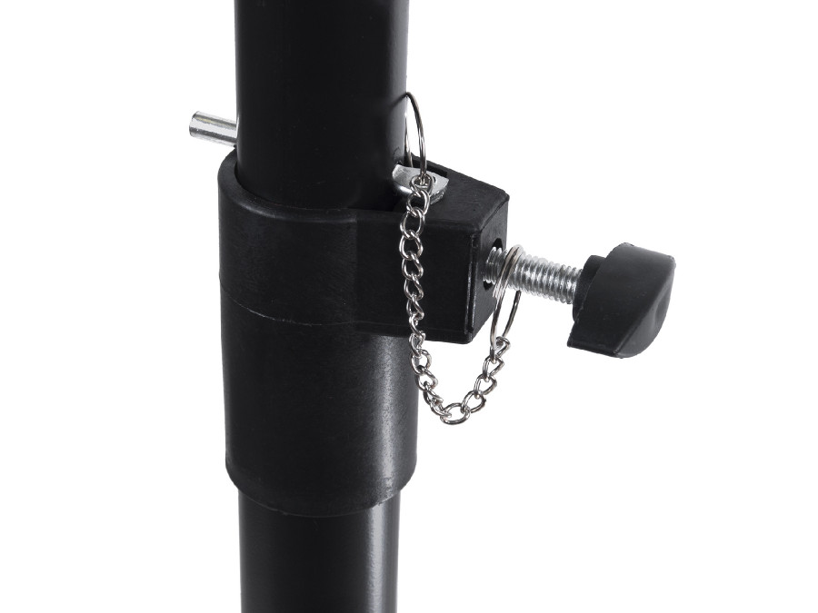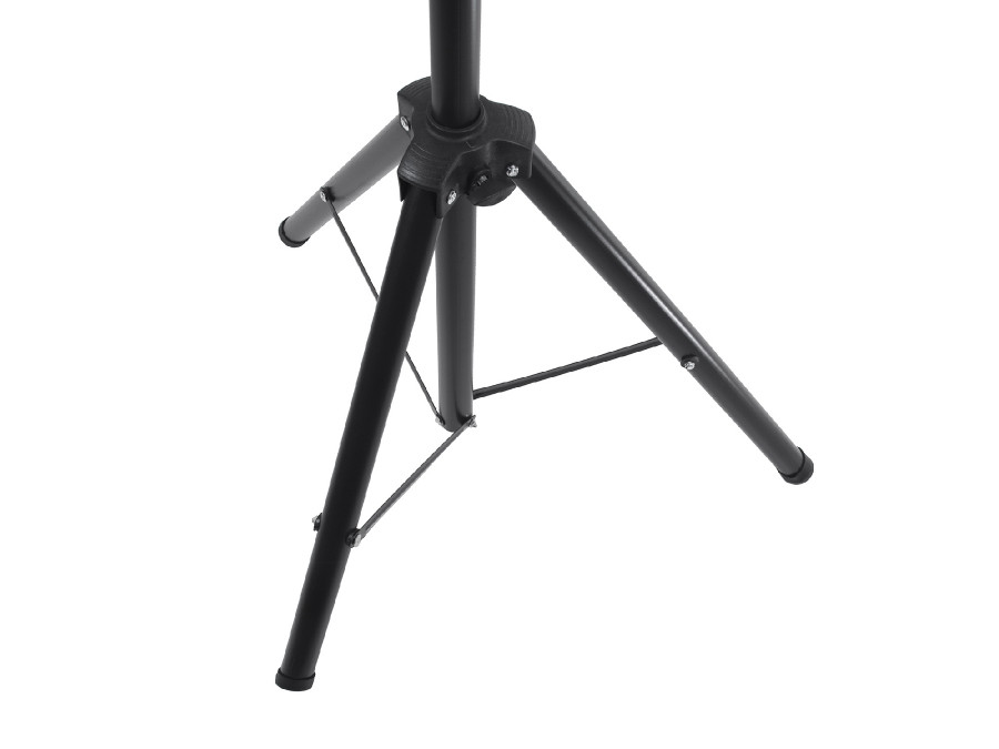 Stojak wykonany został ze stali pomalowanej proszkowo na kolor czarny.