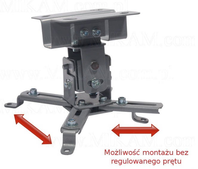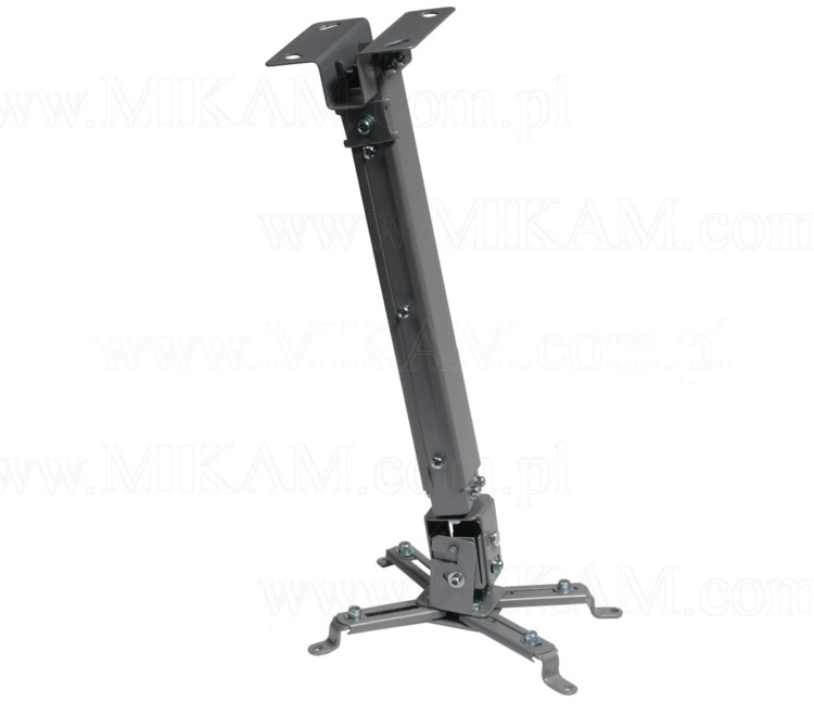 Sufitowy uniwersalny uchwyt do projektora. Trwała i bezpieczna metalowa konstrukcja, wewnątrz uchwytu można poprowadzić kable dzięki czemu całość wygląda bardzo estetycznie. Cztery niezależne ruchome ramienia umożliwiają zamocowanie dowolnego projektora. Bardzo wysoka jakość wykonania.