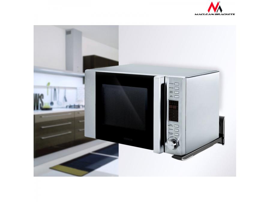 Uchwyt wykonany jest z bardzo wytrzymałych materiałów co zapewnia jego trwałość i pewność użytkowania. Uniwersalny uchwyt ścienny do kuchenek mikrofalowych a także sprzętu AV, np. tunera SAT, DVD, konsoli, etc. Uchwyt jest bardzo łatwy w montażu i obsłudze.