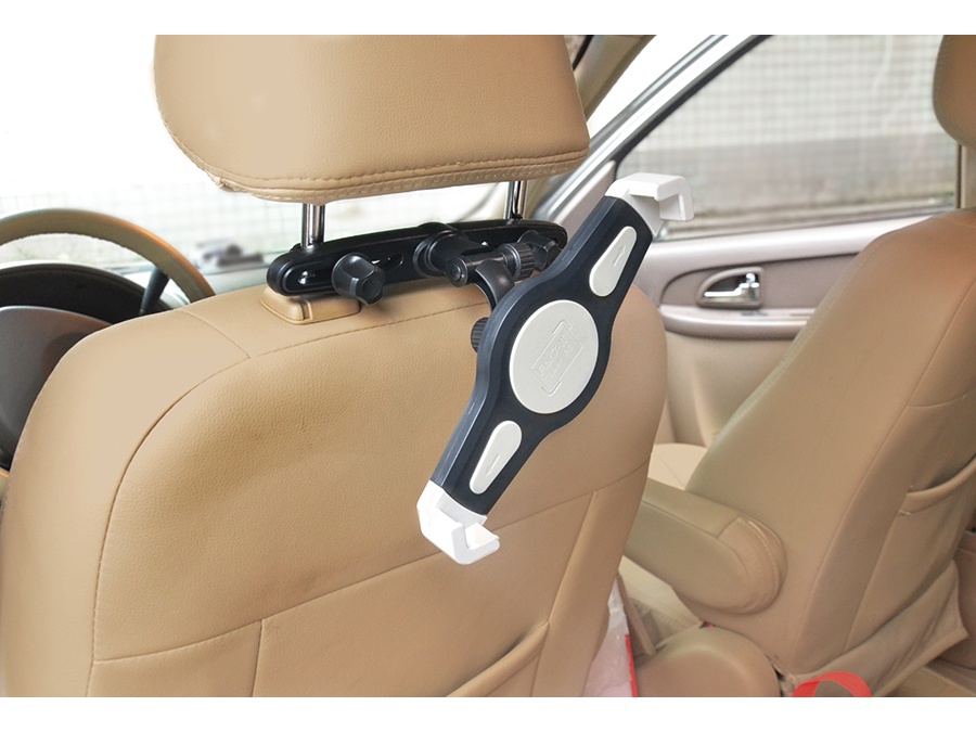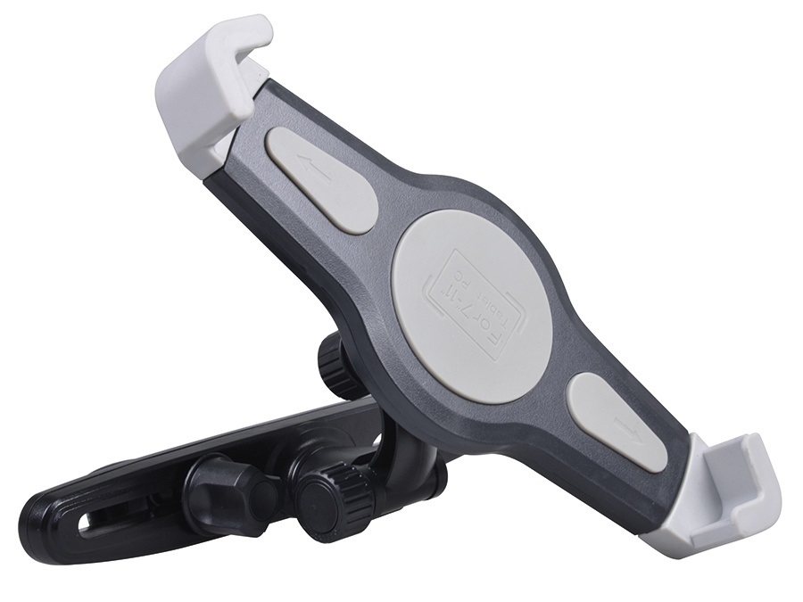 Uniwersalny uchwyt samochodowy do tabletów i innych urządzeń elektronicznych. Uchwyt montowany jest do zagłówka fotela. Dzięki trwałym elementom uchwyt jest niezwykle solidny i wytrzymały. System regulacji pozwala na ustawienie uchwytu z tabletem pod odpowiednim kątem. Nadaje się do wszystkich tabletów o przekątnej 7” – 11”. Wystarczy zamontować uchwyt do zagłówka, bez konieczności użycia jakichkolwiek narzędzi.