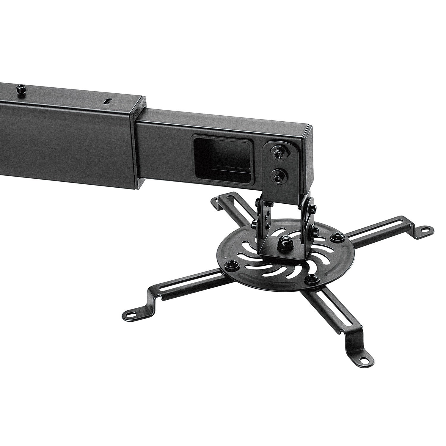 Regulowany rozstaw ramion zapewnia kompatybilność z większością projektorów i rzutników dostępnych na rynku.