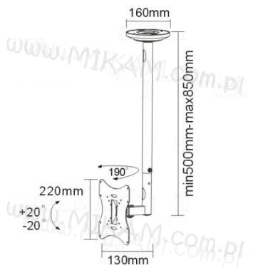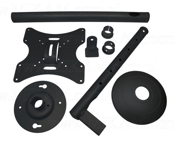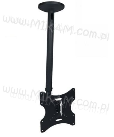 Uniwersalny uchwyt sufitowy do telewizorów LED LCD, który umożliwa zawieszenie telewizora o przekątnej ekeanu od 10 do 37" i wadze nie przekraczającej 30 kg na suficie. Uchwyt umożliwia regulację położenia telewizora w pionie + / - 20 stopni i dookoła własnej osi (360 stopni) w poziomie. Uchwyt wykonany jest z wysokiej jakości metalu. Kolor czarny.