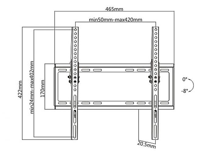 Mocowanie w standardach VESA: 600x400 , 400x400 , 400x300 , 400x200 , 300x300 , 300x200 , 200x200 , 200x100