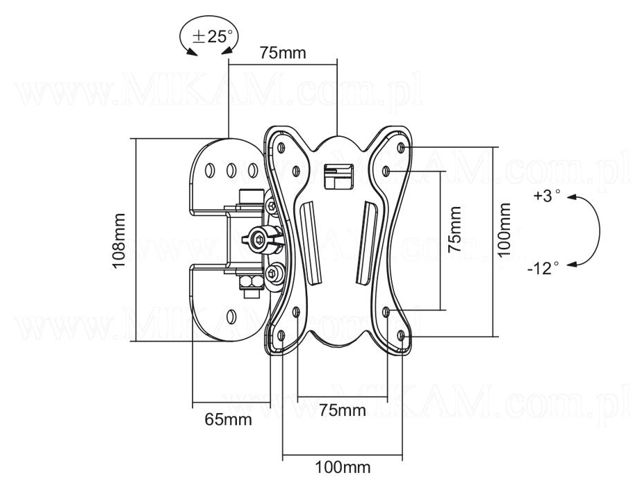 Uniwersalny uchwyt ścienny służy do montażu telewizorów LCD, LED i Plazmowych oraz monitorów o wadze do 20kg i o wymiarach przekątnej ekranu od 13” do 27”
