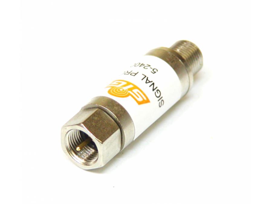 Zabezpieczenie przeciwprzepięciowe Signal - dla wszystkich tych, którzy chcą uniknąć wymiany tunera satelitarnego, multiswitcha, odbiornika TV czy zestawu HiFi po wiosennej lub jesiennej burzy. Urządzenie działa w pełnym zakresie TV naziemnej i satelitarnej. Maksymalny prąd przed jakim może zabezpieczyć sprzęt to 8000 A.